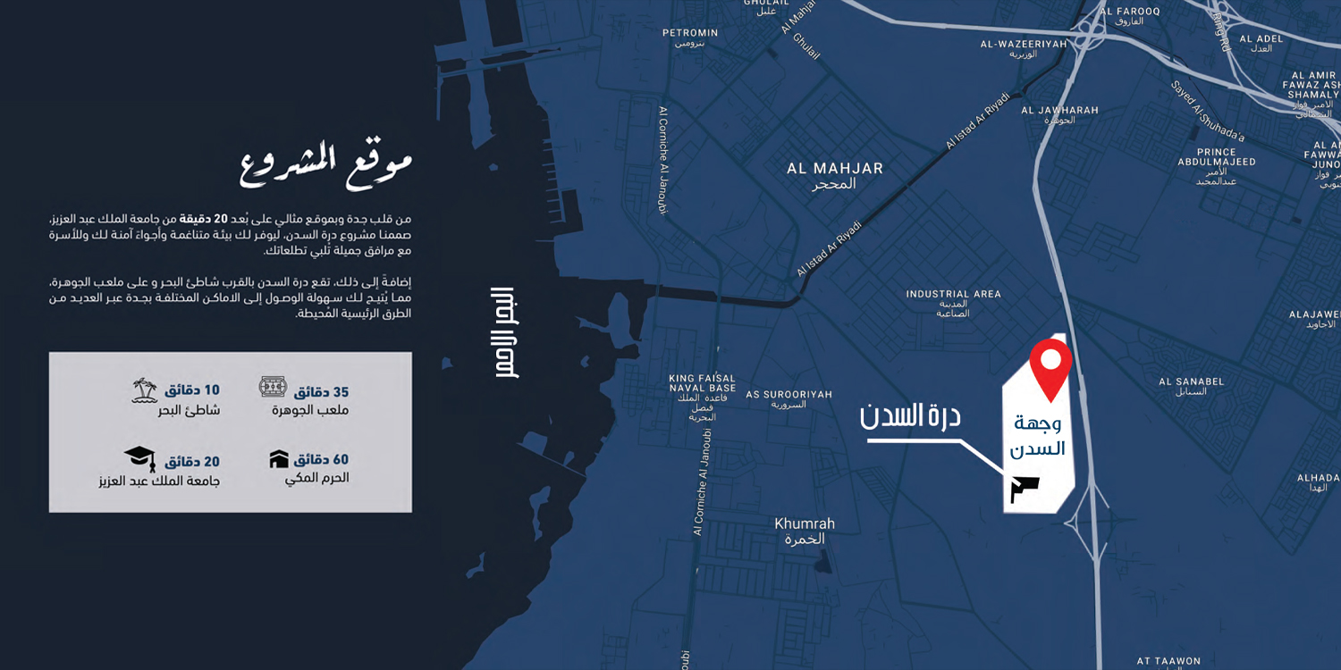 تقدم واجهة السدن مسكنًا يتفهم احتياجك، ويوفر أساسيات الحياة لعائلتك، بالإضافة إلى كافة مميزات الترقية والراحة، فقط على بُعد دقائق من مسكنك. ويتميز مجتمع السدن بموقعه الاستراتيجي جنوب مدينة جدة، مما يمنحك إمكانية الوصول إلى كافة الوجهات الخارجية بسرعة فائقة؛ تعزيزًا لجودة الحياة ورفاهية السكن.